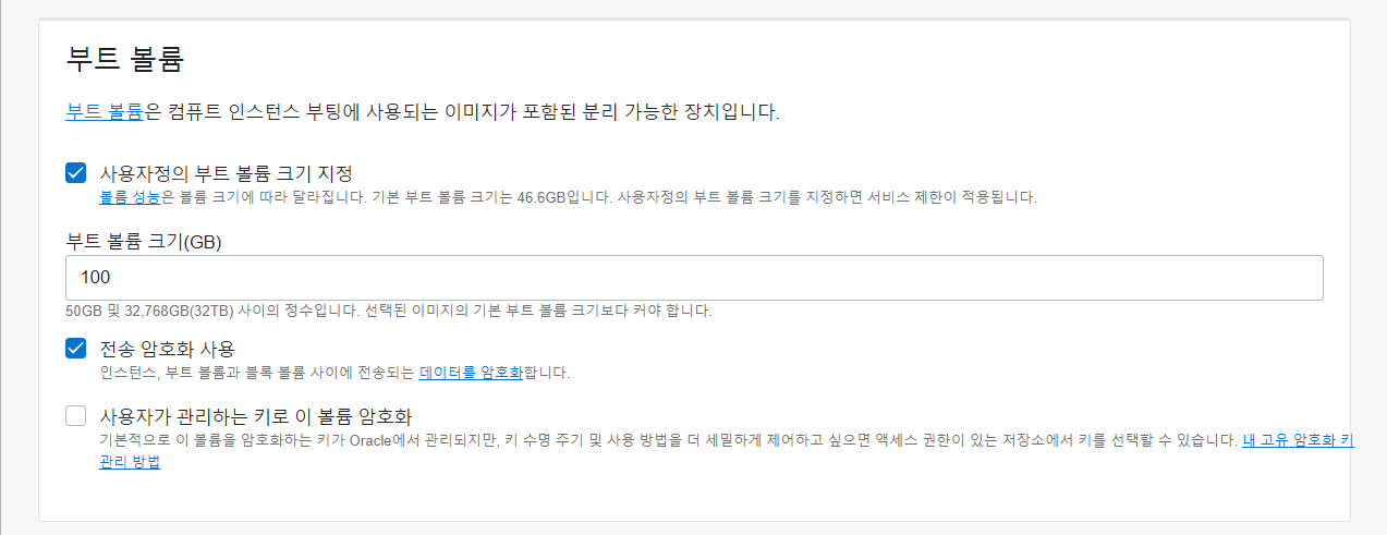 - 나는 일단 이번 프로젝트를 위해서만 사용할 것 같아서 100기가로 설정해주었다.
