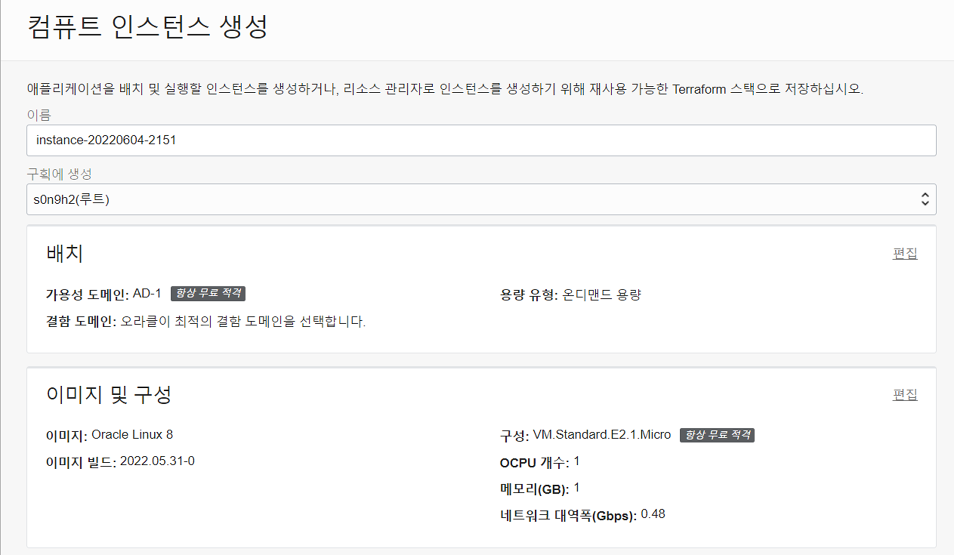 (2) 컴퓨트 인스턴스 생성